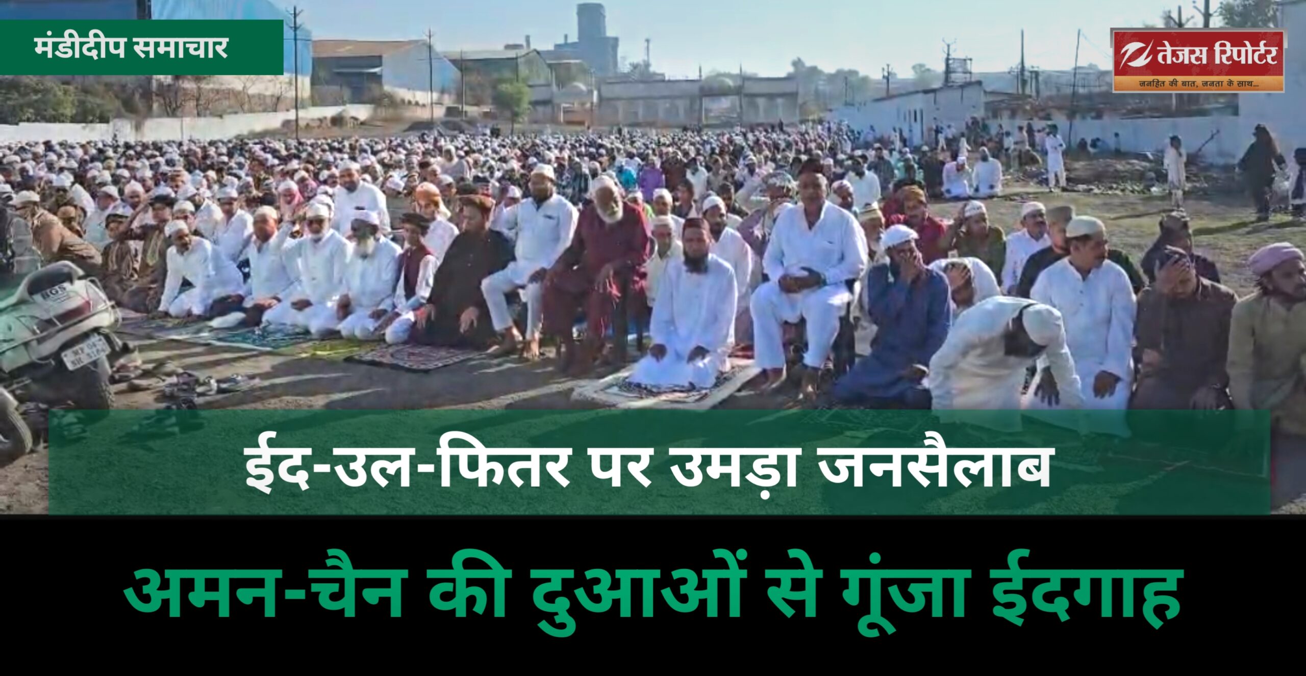 📰 राजू अतुलकर मंडीदीप | औद्योगिक नगर मंडीदीप में ईद-उल-फितर का पर्व पूरे उत्साह, आस्था और आपसी भाईचारे के साथ मनाया गया। सतलापुर थाना परिसर के पीछे स्थित नई ईदगाह में हजारों लोगों ने एक साथ नमाज़ अदा कर देश और समाज में अमन, चैन, तरक्की और खुशहाली की दुआ