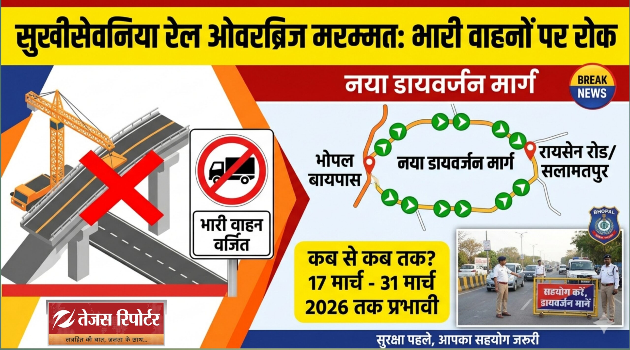 रेल ओवरब्रिज मरम्मत के चलते ट्रैफिक डायवर्जन लागू, भारी वाहनों की एंट्री बंद