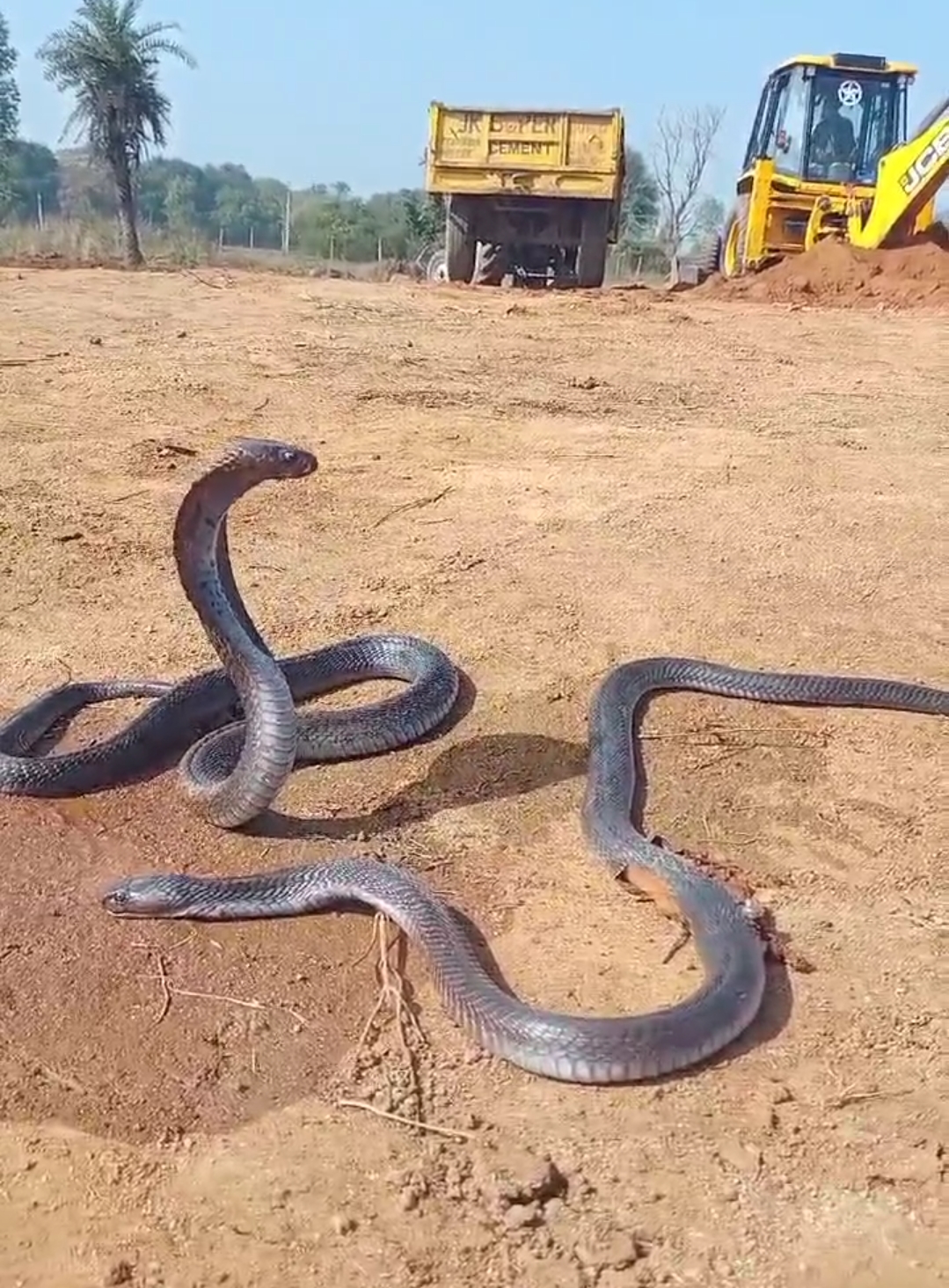 मशीन के चालक ने जैसे ही फावड़ा चलाया, एक अजीब-सा शोर सुनाई दिया। फावड़ा रुका, और सामने नाग की निर्जीव देह और घायल नागिन का दिल दहला देने वाला दृश्य था। चालक ने अपनी मशीन तुरंत बंद की और हड़बड़ाते हुए गांव वालों को बुलाया।