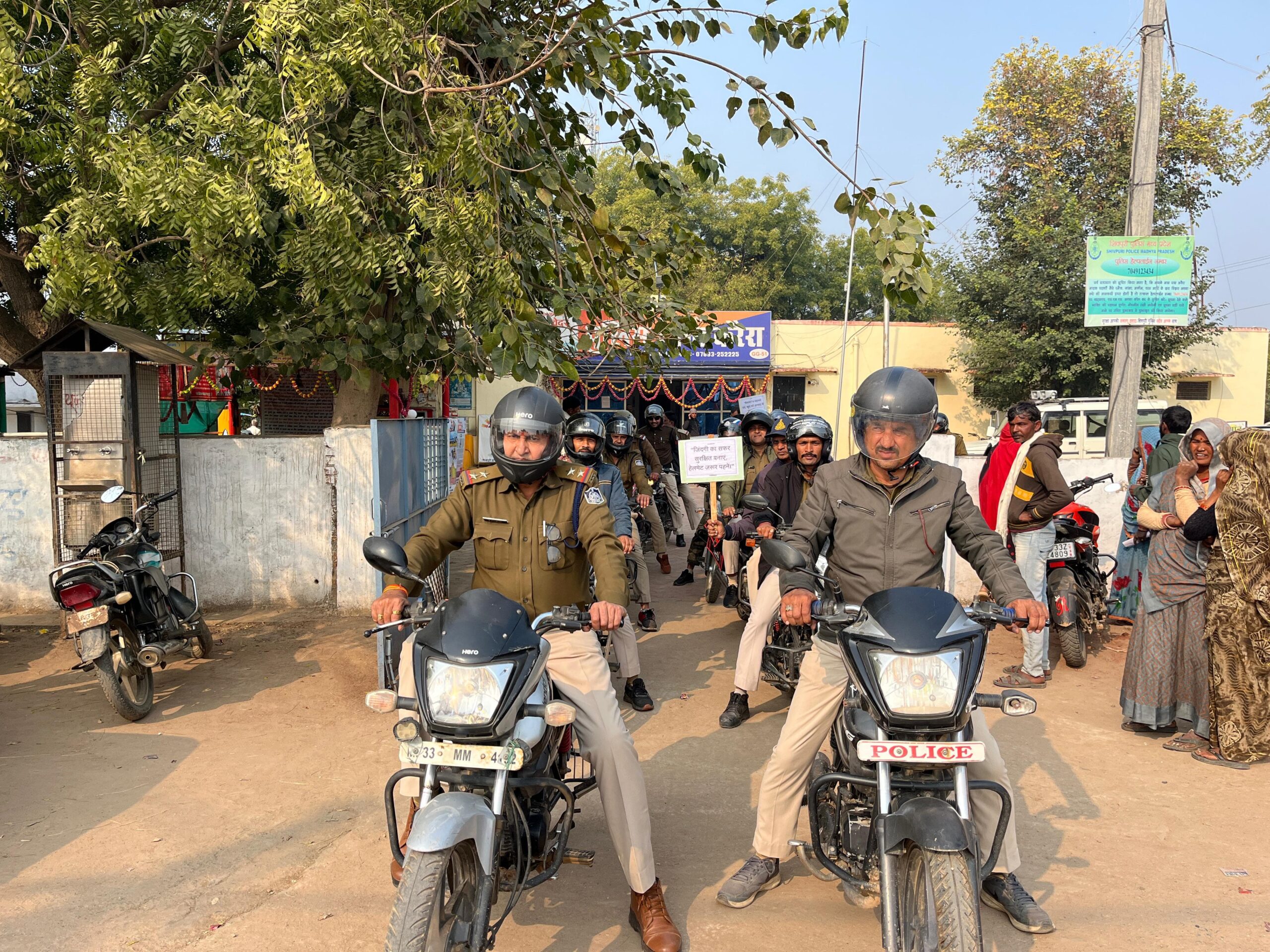 आज निकाली गई जागरूकता रैली पुलिस अधीक्षक कार्यालय से शुरू होकर शहर के प्रमुख स्थलों—अस्पताल चौराहा, माधव चौक, ग्वालियर वायपास, करौंदी संबेल, गायत्री मंदिर और तात्या टोपे तिराहा—से गुजरते हुए समाप्त हुई। इस रैली में बाइक सवार पुलिसकर्मियों ने हेलमेट पहनकर यातायात नियमों के पालन का उदाहरण प्रस्तुत किया।