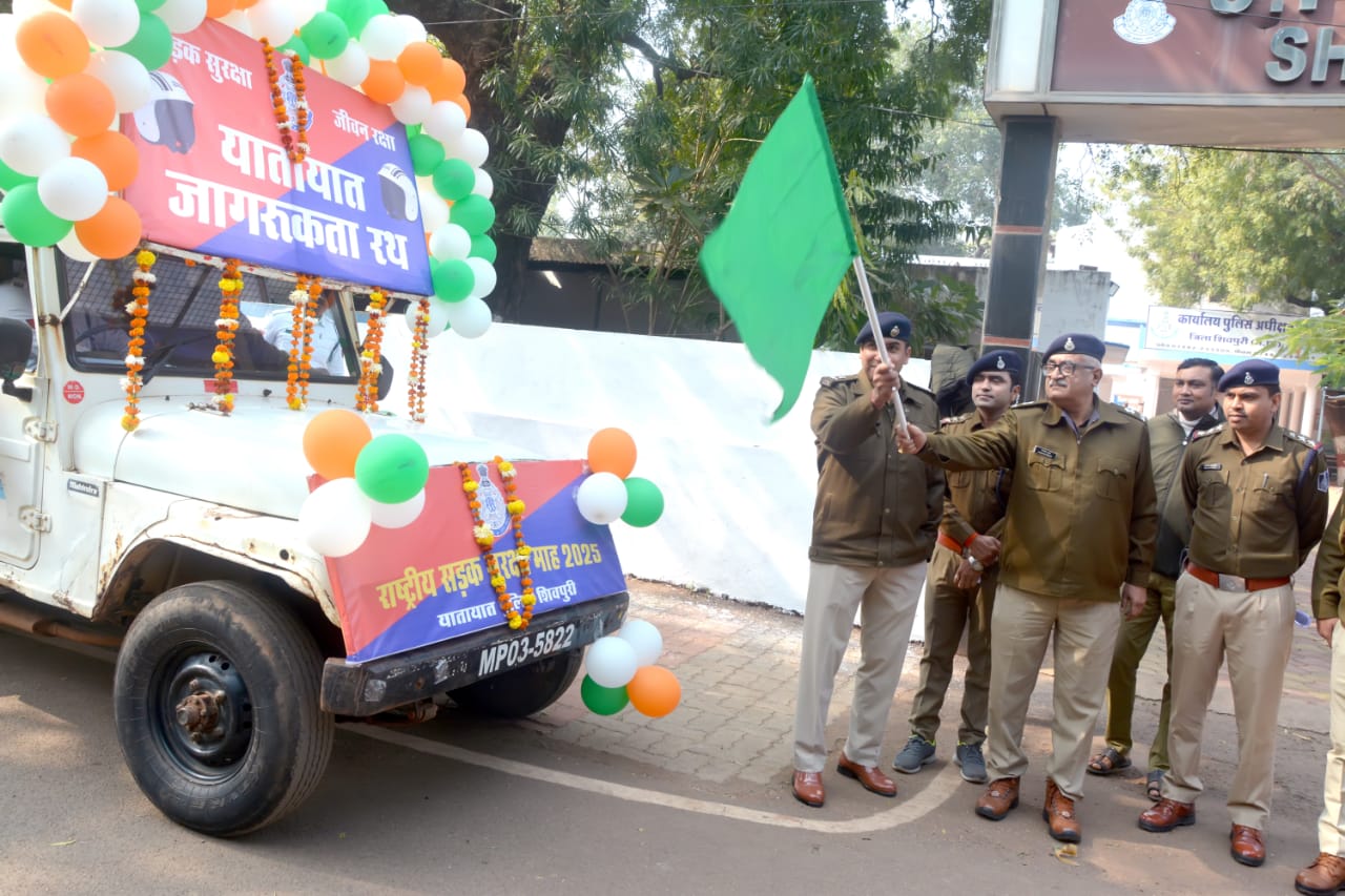 शिवपुरी | सड़क दुर्घटनाओं में कमी लाने और यातायात नियमों के प्रति आमजन को जागरूक करने के उद्देश्य से शिवपुरी पुलिस द्वारा सड़क सुरक्षा माह की शुरुआत की गई। इस अवसर पर पुलिस अधीक्षक शिवपुरी श्री अमन सिंह राठौड़ ने जागरूकता रथ को हरी झंडी दिखाकर रवाना किया। शिवपुरी के विभिन्न थाना क्षेत्रों में रैली आयोजित कर लोगों को यातायात नियमों के महत्व को समझाया गया।