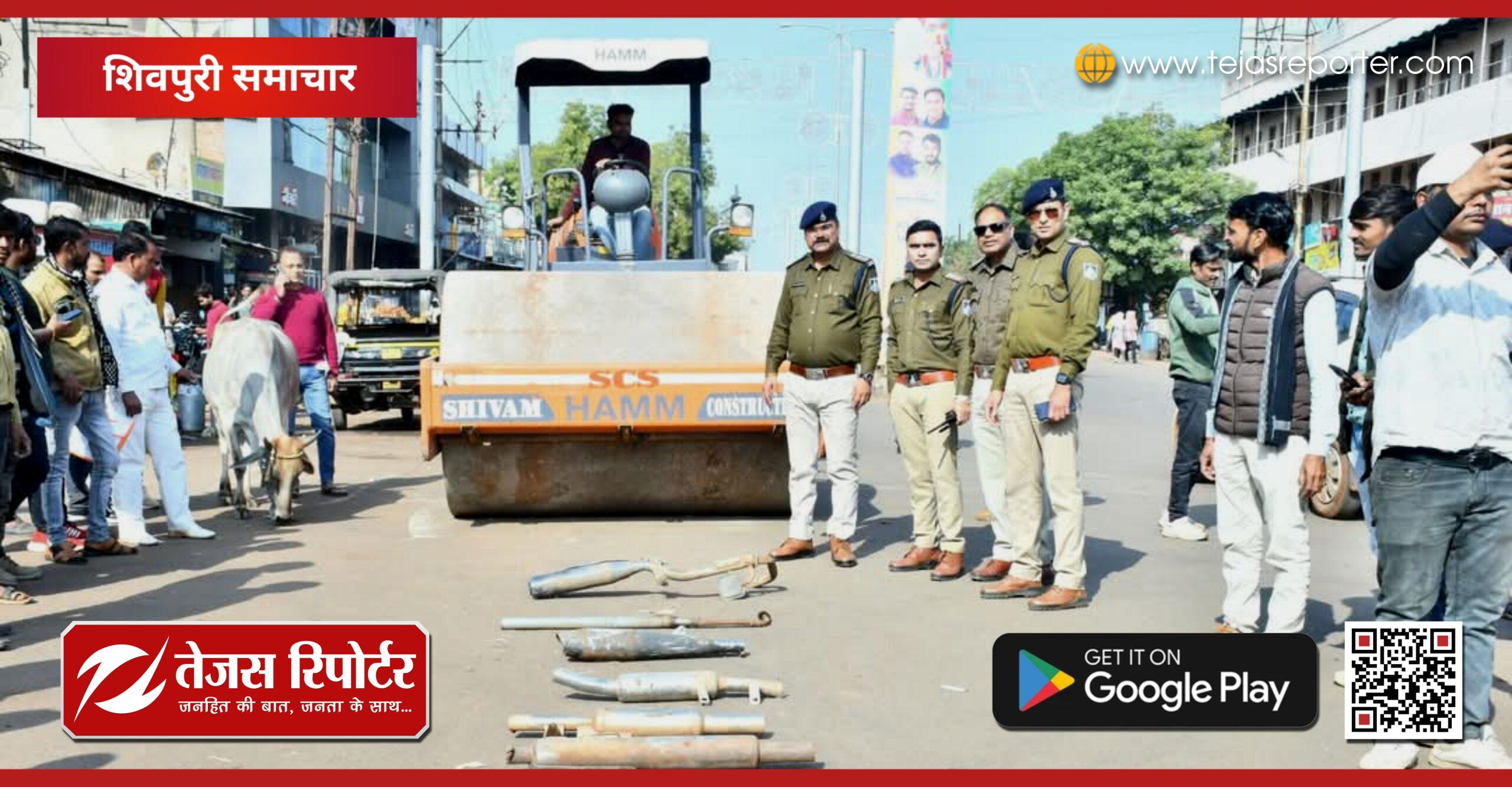 शिवपुरी पुलिस ने दहशत फैलाने वाले साइलेंसरों का किया खात्मा