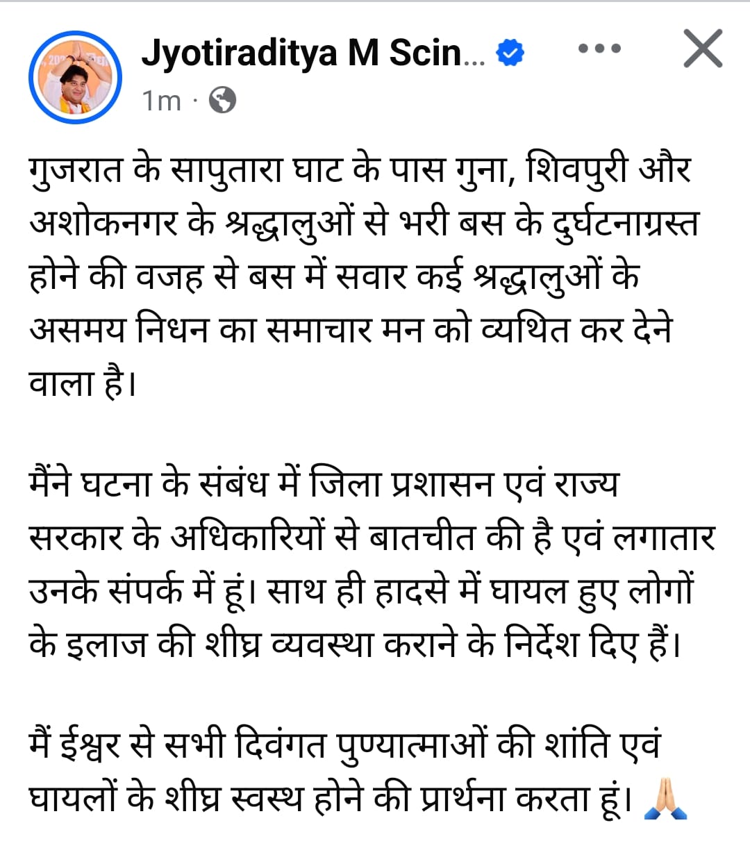 शिवपुरी बस हादसा, गुजरात सापूतारा बस दुर्घटना, ज्योतिरादित्य सिंधिया न्यूज, मध्य प्रदेश में बड़ा सड़क हादसा, कोलारस शिवपुरी हादसा अपडेट, बस एक्सीडेंट न्यूज, मध्य प्रदेश समाचार, शिवपुरी ब्रेकिंग न्यूज, सड़क दुर्घटना में मृतकों की सूची, श्रद्धालुओं से भरी बस पलटी