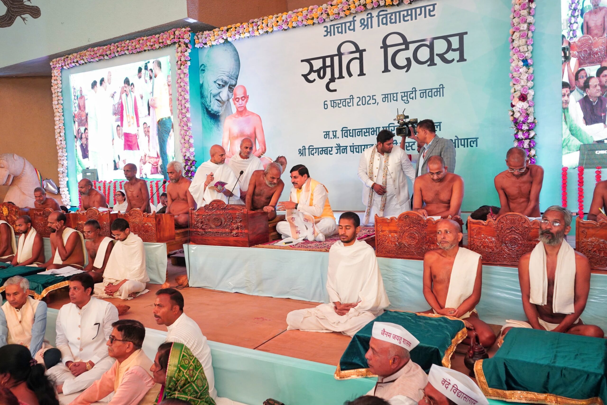 भोपाल | राष्ट्र संत आचार्य श्री विद्यासागर जी के प्रथम समाधि स्मृति दिवस पर गुरु गुणानुवाद सभा में मुख्यमंत्री मोहन यादव सहित संत-मुनियों के सान्निध्य में आचार्य भगवन को विनयांजलि दी गई।