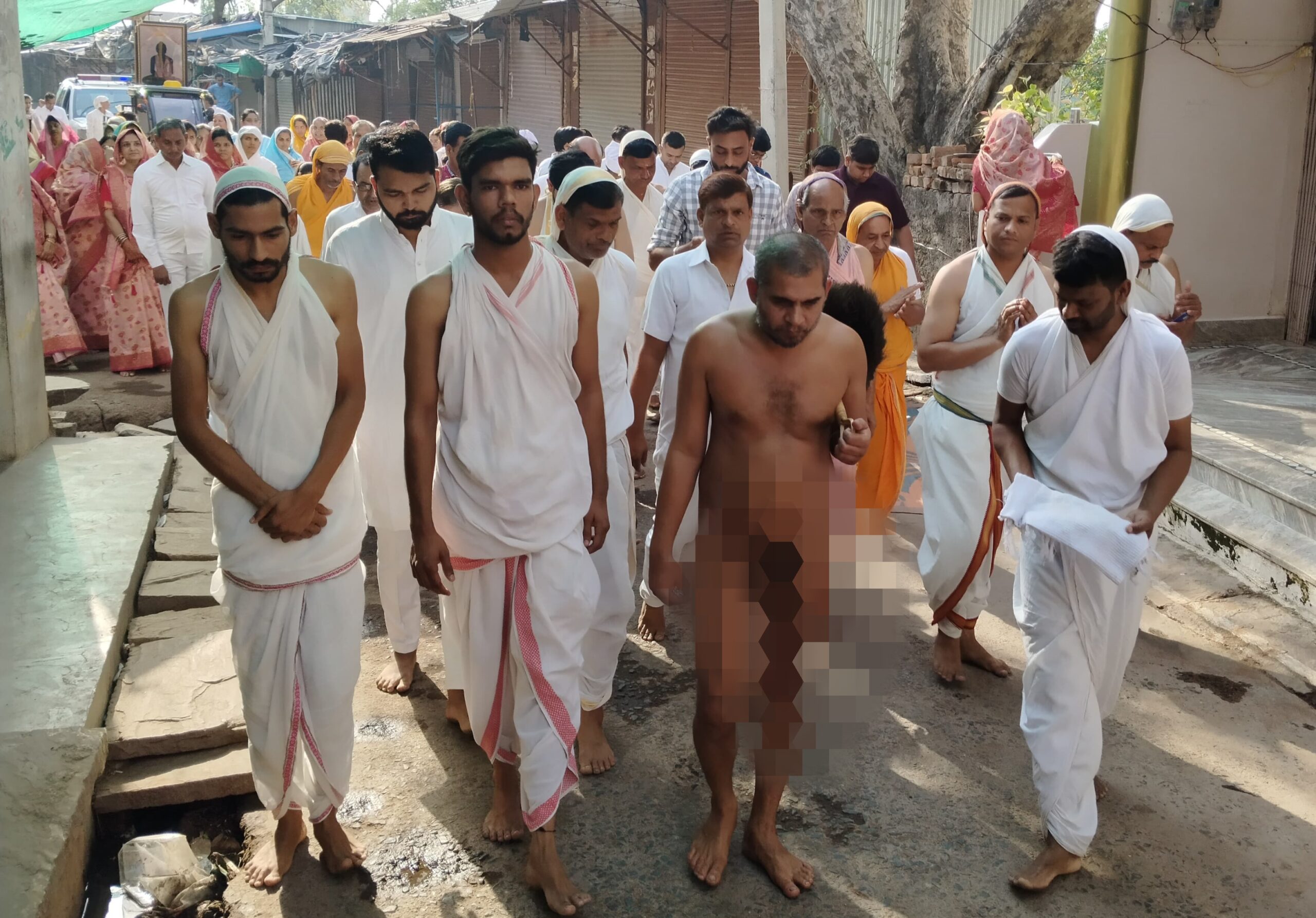 पूज्य मुनि श्री के निर्देशानुसार इस वर्ष समाज के अधिकांश साधर्मीजन इन्द्र के वेश में – पारंपरिक धोती-दुपट्टा पहनकर – शोभायात्रा में सहभागी बने। यह दृश्य अत्यंत अनुकरणीय और भावपूर्ण था। एक विशेष नवाचार के अंतर्गत सभी श्रद्धालु विमान जी के पीछे-पीछे अत्यंत शालीनता और अनुशासन के साथ चल रहे थे। पूज्य महाराज जी के आदेशानुसार केवल विमान उठाने वाले और व्यवस्थापक ही विमान जी के समीप थे, जिससे आयोजन में एकरूपता और व्यवस्था का भाव स्पष्ट झलक रहा था।