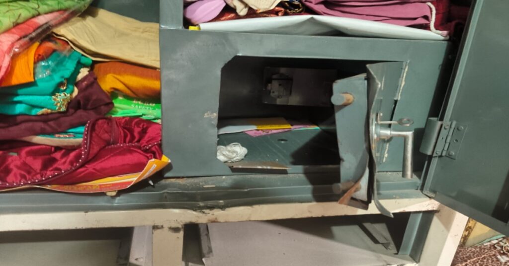 शिवपुरी | शनिवार रात बामौरकला गांव में चोरी की बड़ी वारदात ने गांव में सनसनी फैला दी। बुजुर्ग महिला उर्मिला गुप्ता के मकान से चोर लाखों रुपए के जेवरात और नकदी समेटकर फरार हो गए। घटना के समय घर में सिर्फ बहू माधवी गुप्ता और उनकी बेटी मौजूद थीं।