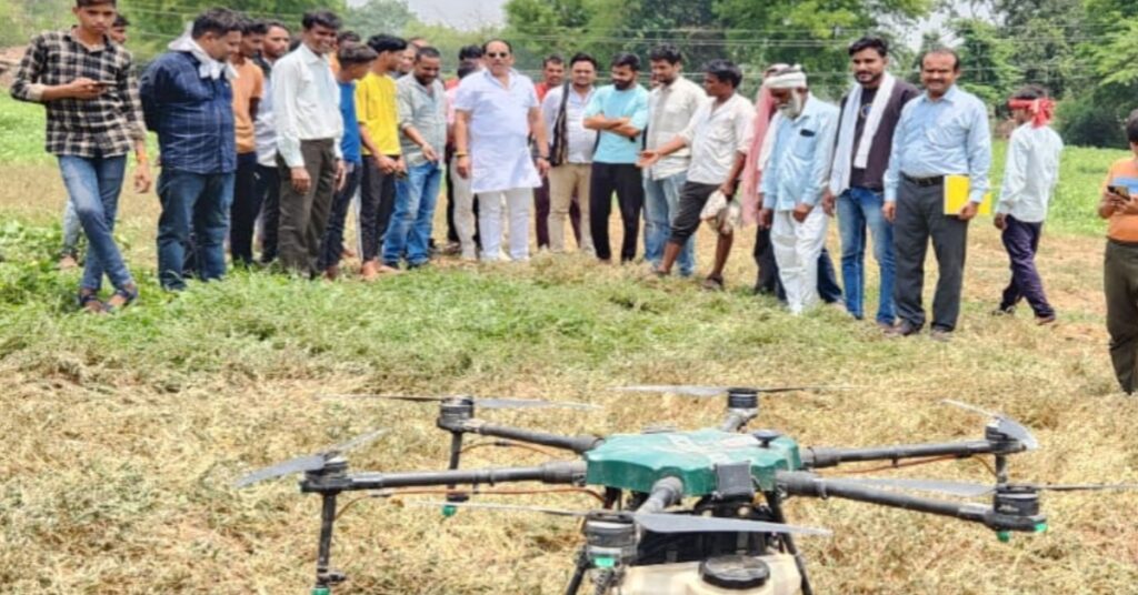 ड्रोन तकनीक से दवा छिड़काव का प्रदर्शन