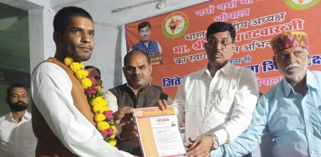 रिपोर्ट सूरज मेहरा- भोपाल नमो नमो मोर्चा भारत के राष्ट्रीय अध्यक्ष विजय हटवार ने भोपाल युवा जिलाध्यक्ष के पद पर जितेंद्र रिछारिया को नियुक्ति पत्र प्रदान किया