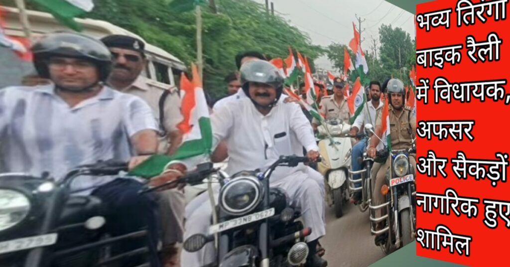 पूरे मार्ग में उन्होंने राष्ट्रीय ध्वज लहराते हुए लोगों में जोश और उत्साह का संचार किया। रैली में अनुविभागीय दंडाधिकारी (राजस्व) शिवदयाल धाकड़, एसडीओपी प्रशांत शर्मा, टीआई उमेश उपाध्याय, नगर पंचायत सीएमओ आनंद शर्मा, जनपद पंचायत सीईओ नरेंद्र नरवरिया, सभी विभागों के प्रमुख अधिकारी-कर्मचारी, जनप्रतिनिधि और स्थानीय पत्रकार बड़ी संख्या में शामिल हुए।