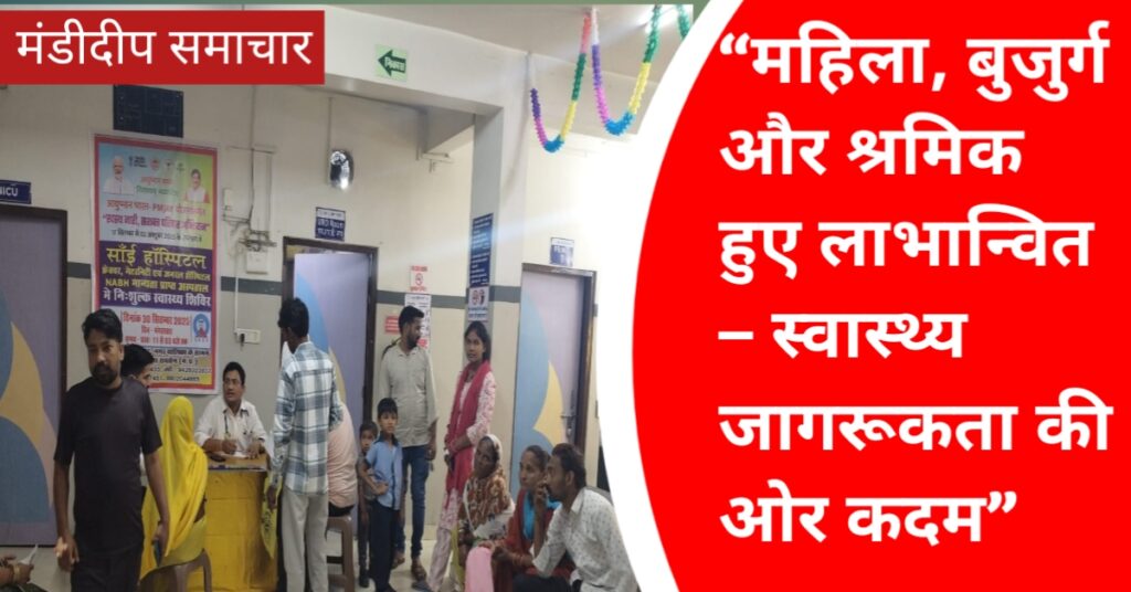 मंडीदीप | औद्योगिक क्षेत्र मंडीदीप में संचालित प्रमुख स्वास्थ्य संस्था सांई हॉस्पिटल में मंगलवार को निशुल्क स्वास्थ्य शिविर का आयोजन किया गया। यह शिविर आयुष्मान भारत व प्रधानमंत्री जन आरोग्य योजना (पीएम-जय) के अंतर्गत स्वस्थ नारी सशक्त परिवार अभियान के उपलक्ष्य में आयोजित हुआ।