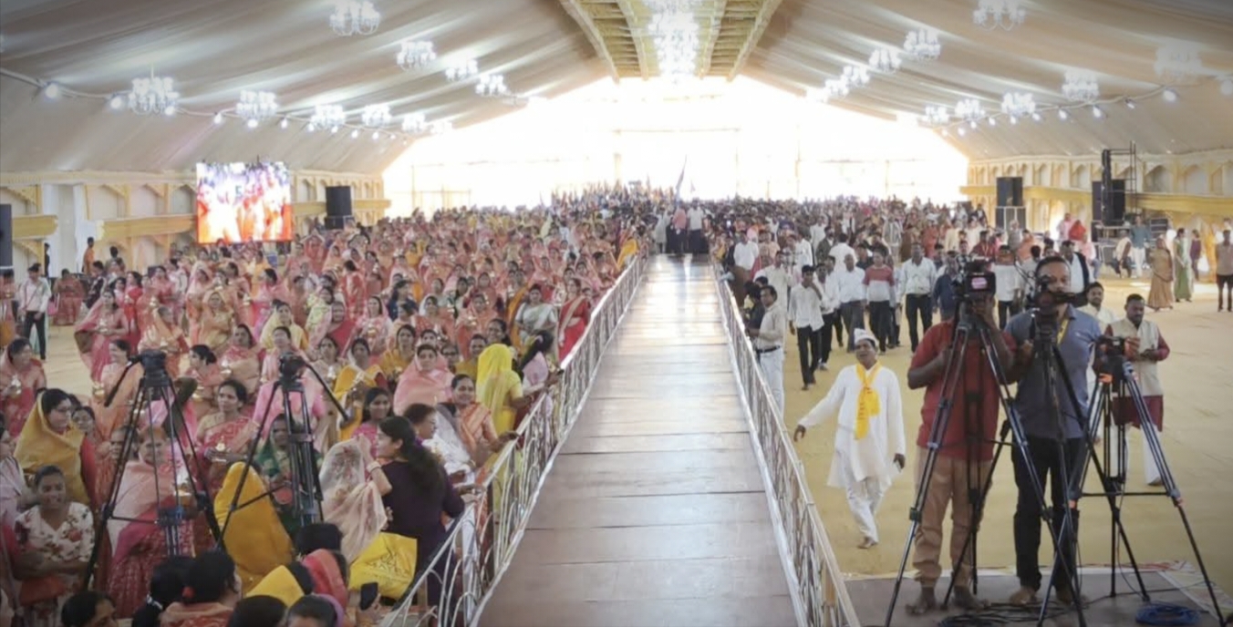 मध्याह्न 12:30 बजे सीमंतनी क्रियाएं संपन्न हुईं। महिला संगीत के माध्यम से माता की गोद भराई का भावपूर्ण दृश्य प्रस्तुत किया गया, जिसने उपस्थित जनसमूह को भाव-विभोर कर दिया।