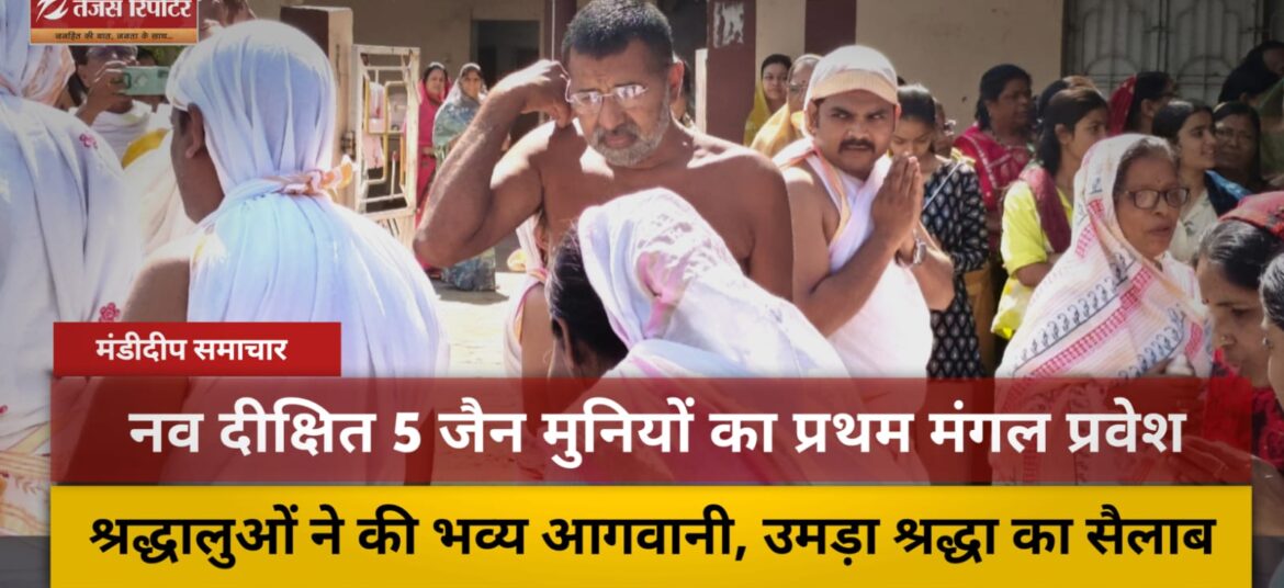 📰 सौरभ जैन मंडीदीप | शुक्रवार सुबह औद्योगिक नगरी मंडीदीप एक ऐतिहासिक और आध्यात्मिक क्षण की साक्षी बनी। मुक्तागिरी में जैनेश्वरी दीक्षा प्राप्त 5 जैन मुनियों के प्रथम आगमन पर नगर में भव्य मंगल आगवानी हुई, जिसमें श्रद्धालुओं की भारी भीड़ उमड़ पड़ी। सुबह जैसे ही मुनि संघ का आगमन जिलेटिन चौराहा पर हुआ, पूरा … Continue reading भक्ति से सराबोर मंडीदीप : नव दीक्षित 5 जैन मुनियों का प्रथम मंगल प्रवेश, श्रद्धालुओं ने की भव्य आगवानी, उमड़ा श्रद्धा का सैलाब