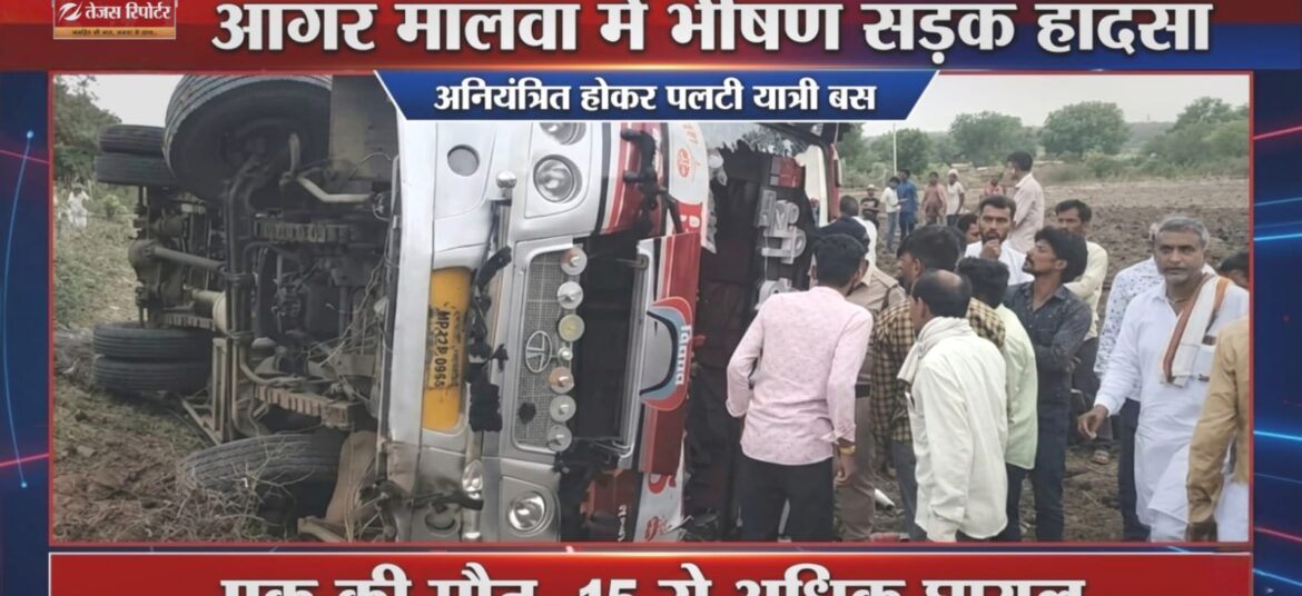 आगर मालवा में भीषण सड़क हादसा : अनियंत्रित होकर पलटी यात्री बस, एक की मौत, 15 से अधिक घायल