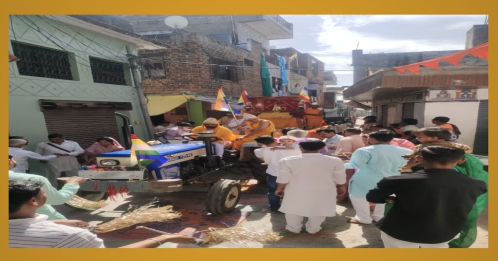 चल समारोह में आकर्षक झांकियां, धार्मिक ध्वज, बैंड-बाजे और भक्ति संगीत के साथ सैकड़ों श्रद्धालुओं की उपस्थिति ने इसे भव्य स्वरूप प्रदान किया। नगर के प्रमुख मार्गों पर श्रद्धालुओं की भीड़ उमड़ पड़ी और हर ओर उत्सव जैसा माहौल नजर आया।
