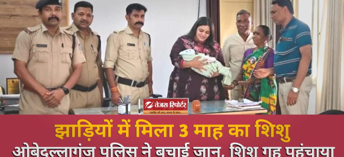 झाड़ियों में मिला 3 माह का शिशु, ओबेदुल्लागंज पुलिस ने बचाई जान, सुरक्षित शिशु गृह पहुंचाया