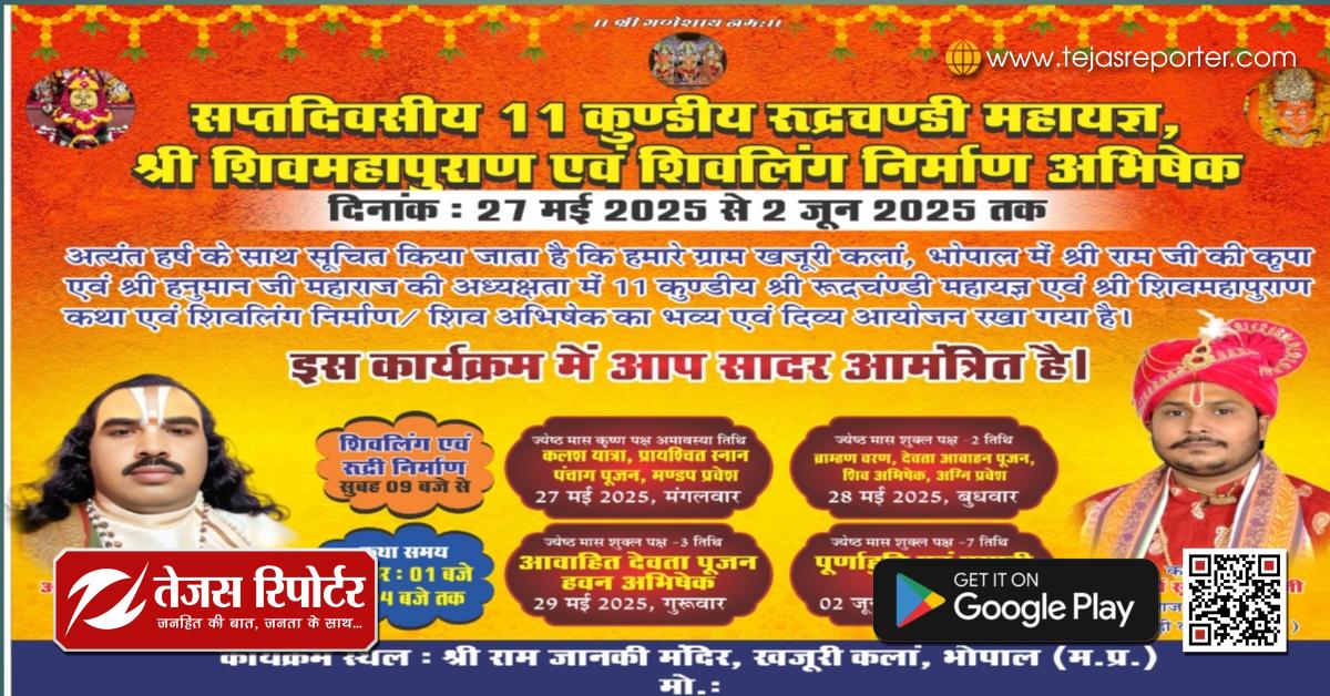 खजूरी कला में शिव महापुराण रूद्र चंडी महायज्ञ की भव्य तैयारी, 27 मई से होगा सात दिवसीय आयोजन May 22, 2025 No Comments