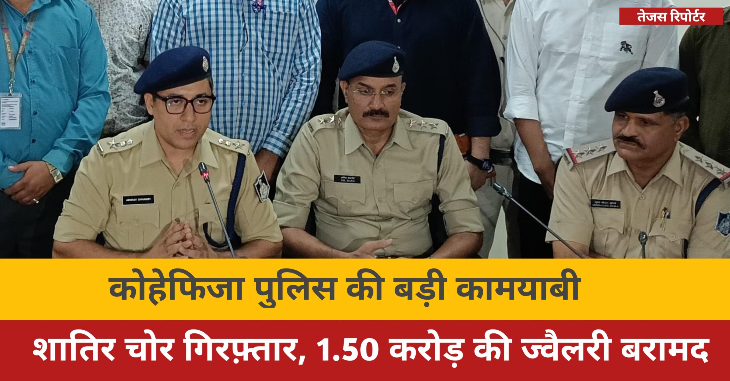कोहेफिजा पुलिस की बड़ी कामयाबी — शातिर चोर गिरफ़्तार, 1.50 करोड़ की ज्वैलरी बरामद ,सोनें के गहनों से लेकर मोबाइल तक बरामद October 6, 2025 No Comments