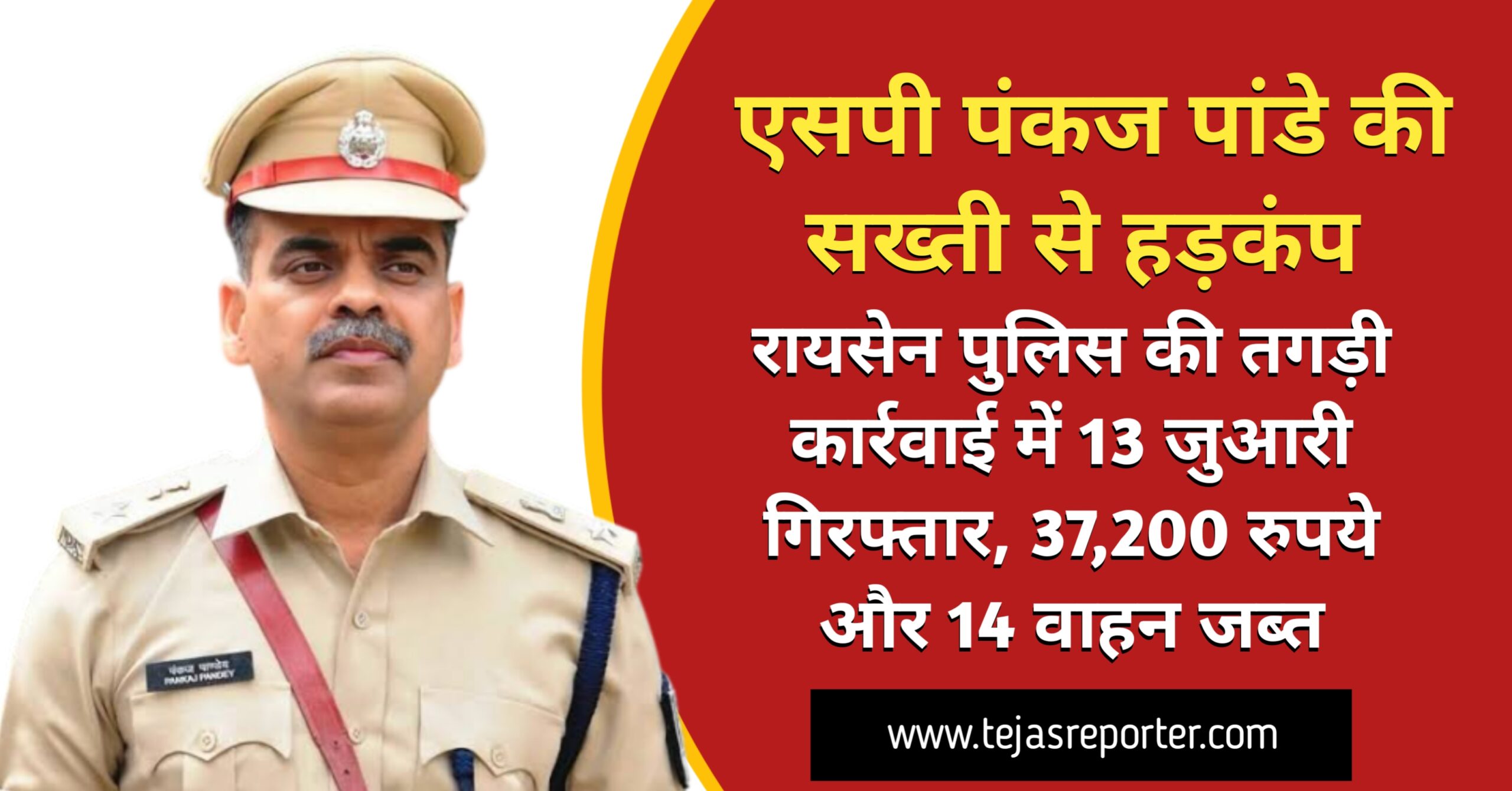 एसपी पंकज पांडे की सख्ती से हड़कंप : रायसेन पुलिस की तगड़ी कार्रवाई में 13 जुआरी गिरफ्तार, 37,200 रुपये और 14 वाहन जब्त February 7, 2025 No Comments